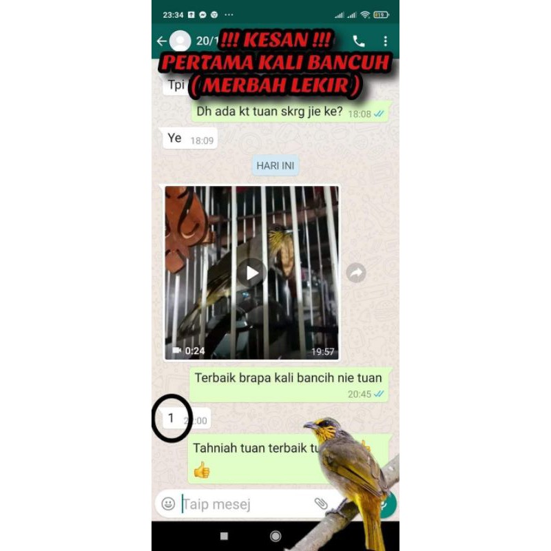 Dijamin mantap.pasang jarak jauh mod slow 95% audio original sound.burung x kalah klau pasang yg nie.tq.